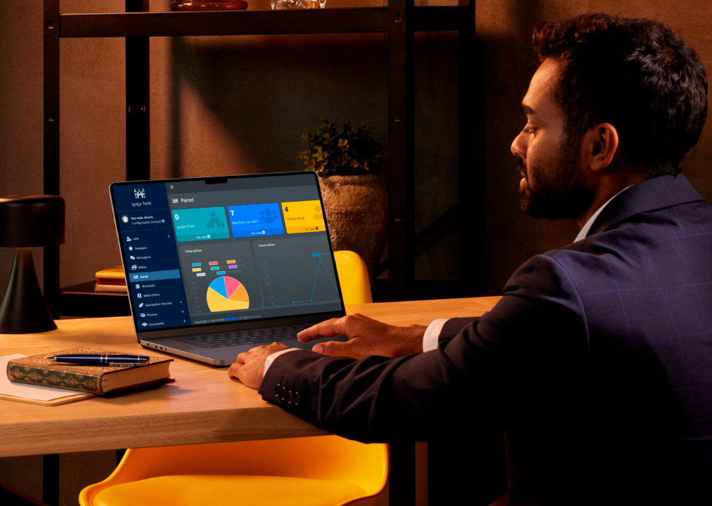 Nosso sistema é totalmente responsivo. Ou seja, pode ser acessado através de computadores, tablets ou celulares e o sistema se adequará ao dispositivo utilizado.